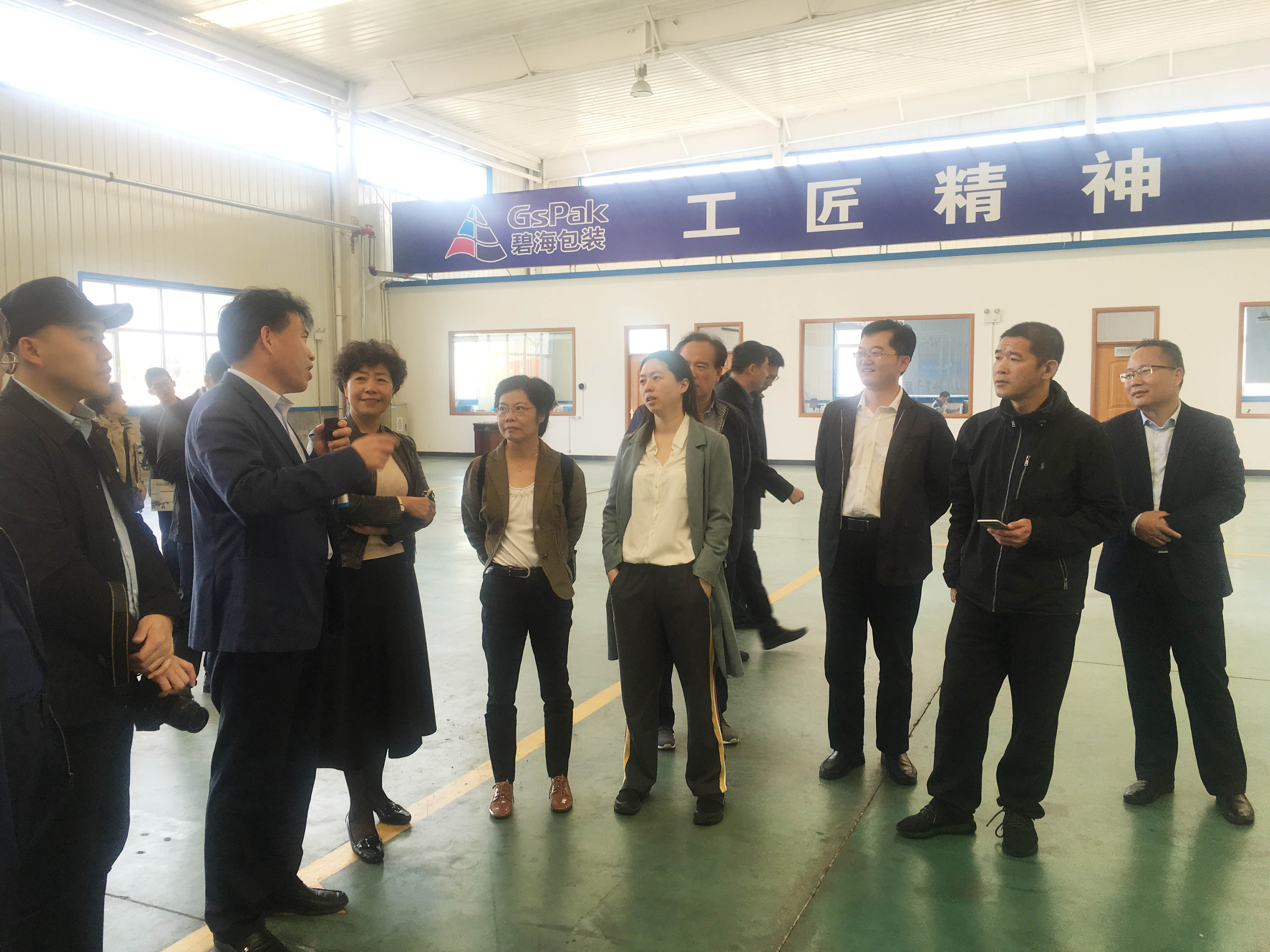 山東碧海包裝材料有限公司董事長厲善紅、執(zhí)行總經(jīng)理王立等人接受采訪并陪同參觀企業(yè)。